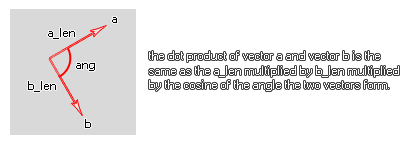 The curious thing about the dot product is the relationship it has to the angle formed by the input vectors which can be expressed as: