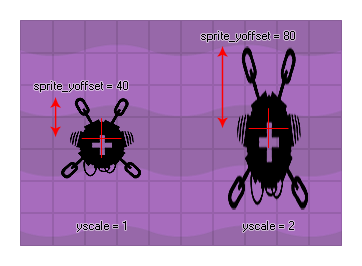 This read only variable returns the local yoffset (the y component of the origin as defined in the sprite editor) of the sprite that has been assigned to the instance. This yoffset is returned in pixels and will be dependant on the image_yscale, so that (for example) if a square 32x32 sprite is defined as having the y origin at 16, when that sprite is scaled by 2 this variable will return 32. If you need the un-scaled yoffset you should use sprite_get_yoffset.